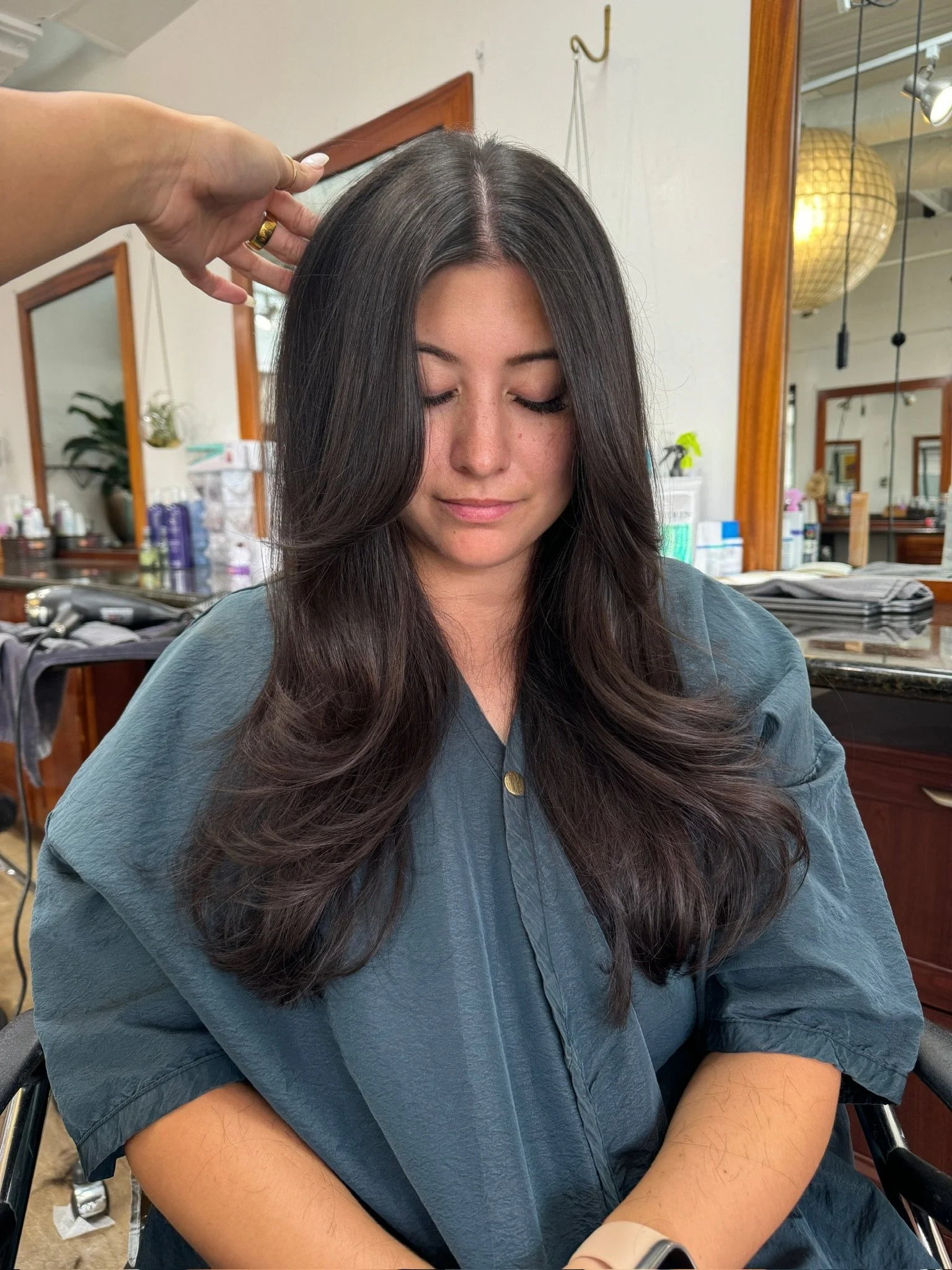 • My cut was perfection. Exactly what I wanted--keeping my length, long layers with extra body around the crown of my head. She really understands how your hair falls, it's texture, and how to cut your hair to achieve your desired results. Mahina even offered a ton of helpful advice during my time with her. When I mentioned I was getting married and wanted to purchase hair extensions, Mahina was kind enough to tell me the shade I should purchase to match my current hair color. I've already made my next appointment with Mahina and this is your sign to make yours too. Mahalo Mahina, see you soon!